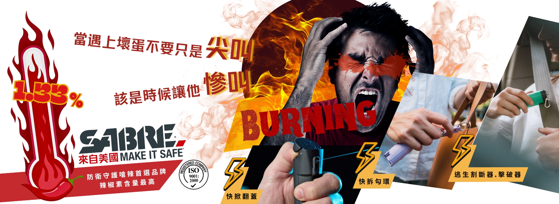 美國SABRE沙豹 求生3in1破窗+逃生割斷器+膠型防身劑 /膠型. 鼠尾草綠 -防身噴霧劑(不二價)
